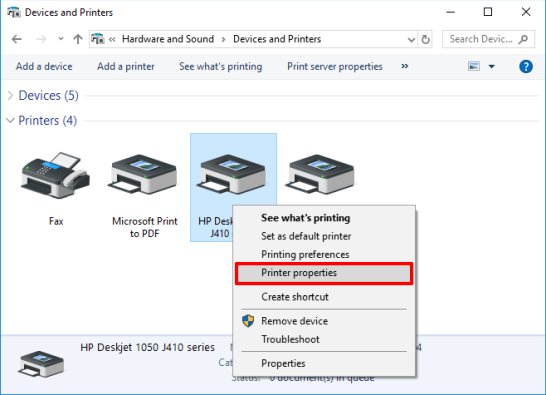 Шаг (4): Теперь щелкните правой кнопкой мыши на принтере, IP-адрес которого вы хотите найти, и выберите опцию Свойства принтера.