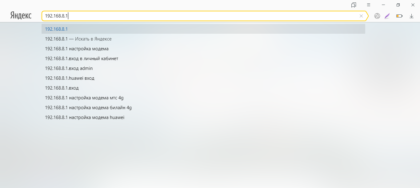 - Когда подсоедините модем к ПК и установите необходимое ПО, в интерфейсе любого браузера откройте страницу по адресу: 192.168.8.1. Она будет доступна, даже если интернета на компьютере нет.