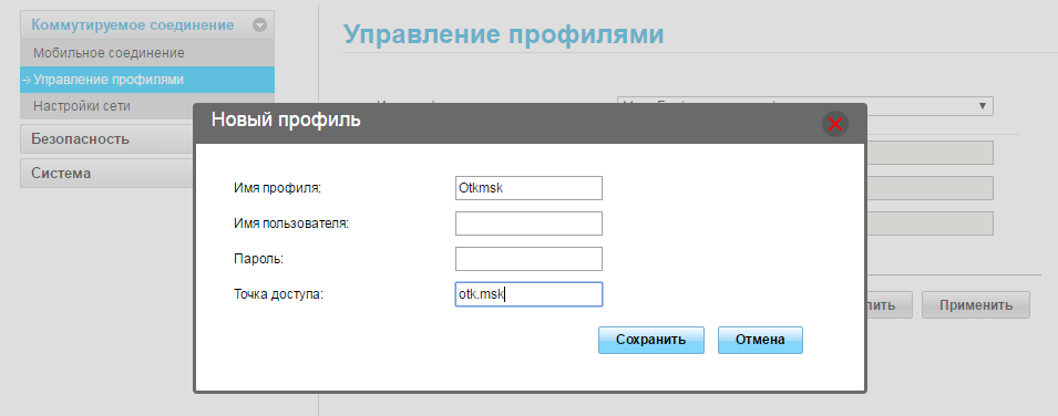 - В название профиля и в имени точки доступа APN укажите значения из таблицы выше.