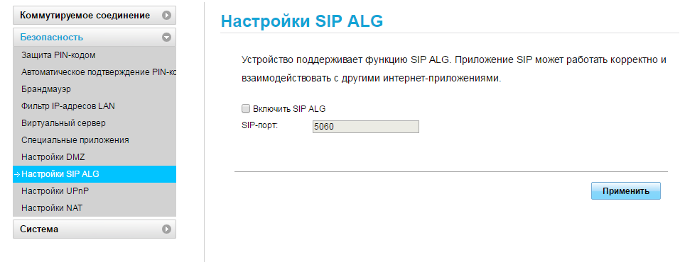 - Если вы будете пользоваться IP-телефонией, зайдите в «Настройки SIP ALG». Отключаем опцию — снимаем галочку с пункта.
