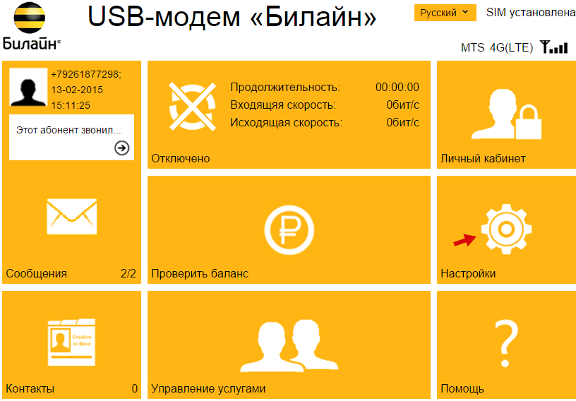 Настройка в фирменной утилите (на примере интерфейса от Beeline)