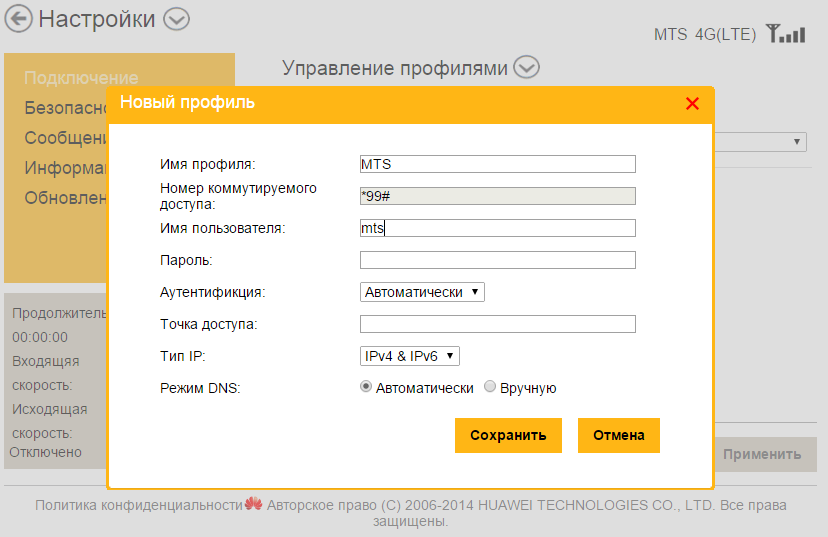 Согласно отзывам роутеры и USB-модемы от компании Huawei качественные и стоят недорого по сравнению со своим конкурентами. Для их настройки в фирменной утилите оператора либо же в «родной» веб-оболочке нужно создать новый профиль (за исключением провайдера «Билайн»). Для этого нужно ввести правильное имя профиля и точку доступа APN. В набираемом номере вводится комбинация *99#.