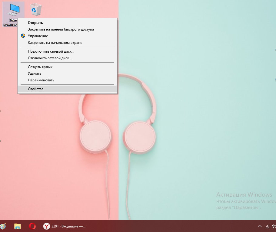 - Для всех других версий «операционки» подойдёт такой способ: жмём на ярлык ПК на «Рабочем столе» ПКМ и кликаем по меню «Свойства».