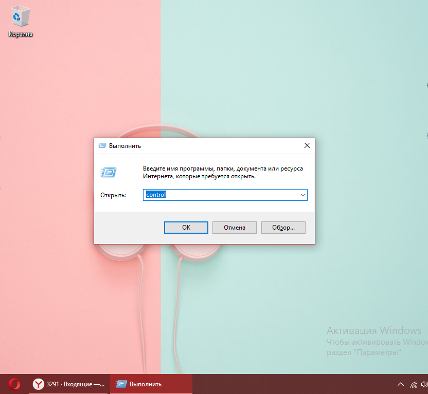 - Сохраняем информацию и открываем «Панель управления» через код control, запущенный в строке «Выполнить» (вызывается зажатием «Вин» и R).
