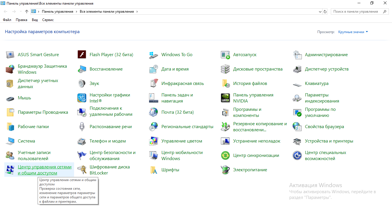 - Переходим в раздел для управления сетями.