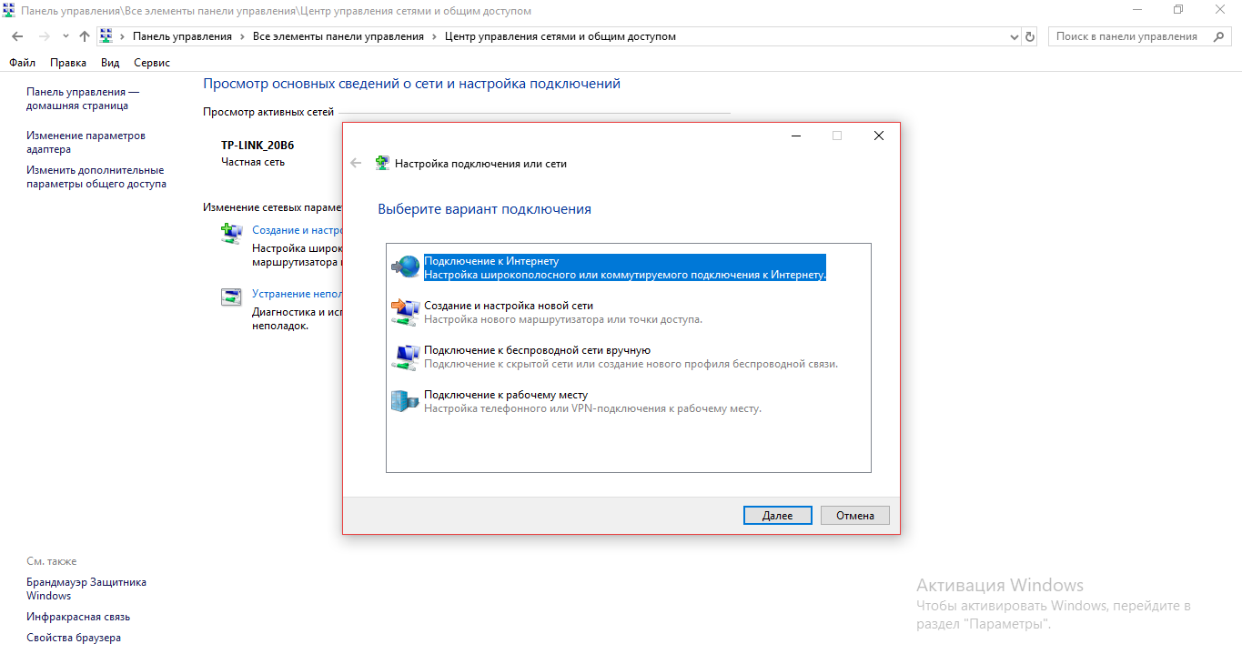 - Выбираем первый пункт «Подключение к интернету».