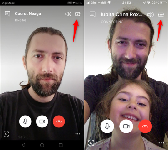На вашем устройстве Android, на вашем iPhone или iPad откройте Skype и нажмите на имя одного из ваших друзей или на предыдущий разговор, который у вас был. Затем нажмите кнопку видеозвонка в правом верхнем углу экрана. Следующие иллюстрации содержат скриншоты Android с левой стороны и скриншоты iPhone с правой стороны.