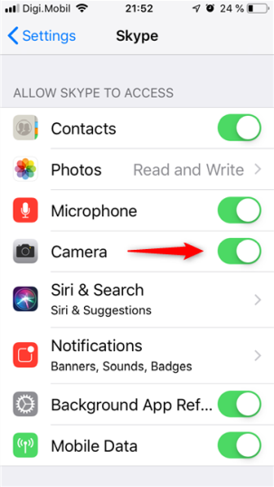 На вашем iPhone или iPad вы можете сделать это в приложении Настройки, в Skype → Камера.