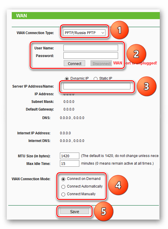 - Дайте команду «Сеть — WAN» и выберите протокол PPTP, если вы используете его. Введите адрес сервера PPTP, имя и пароль пользователя из договора, или попросите администратора сети (когда сеть чужая) сделать это за вас.