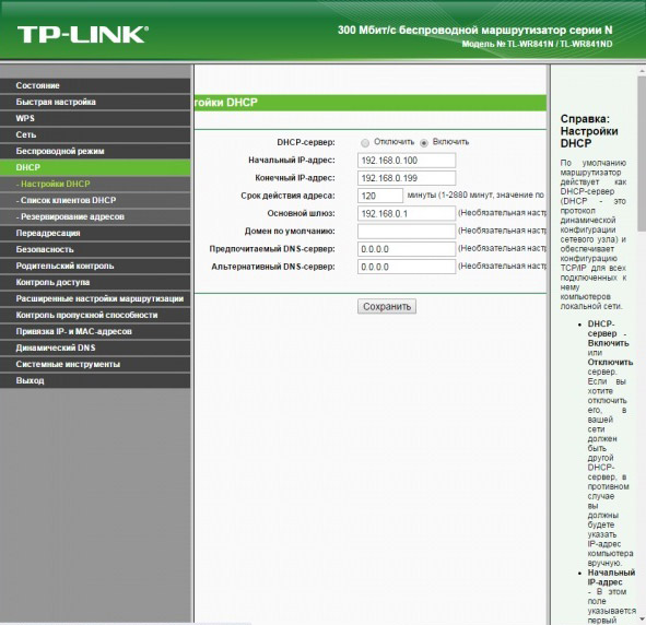 Настройка DHCP-сервера на роутере WR702N