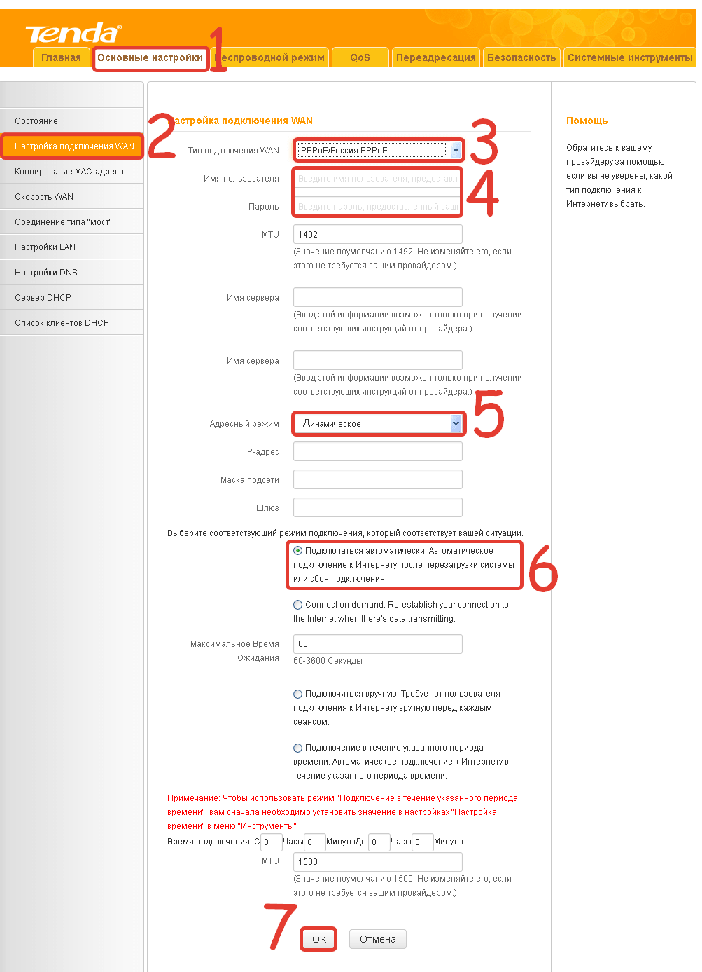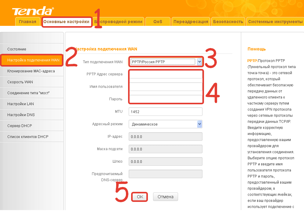 Tenda F300 выйдет в Сеть, используя протокол PPPoE.