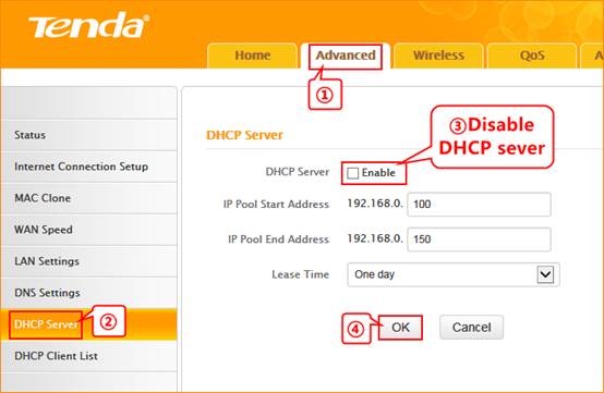 DHCP-настройка Tenda F300