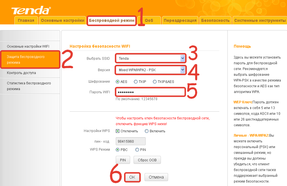 - Выберите смешанный режим TKIP/AES и введите ключ WPA-2. Включите WPS на случай, если ввод кода на ПК или гаджете не будет доступен (например, зависание в работе физической клавиатуры или при срабатывании сенсора дисплея). Включение функции WPS позволит подключить устройство к сети Wi-Fi с кнопки WPS на роутере.