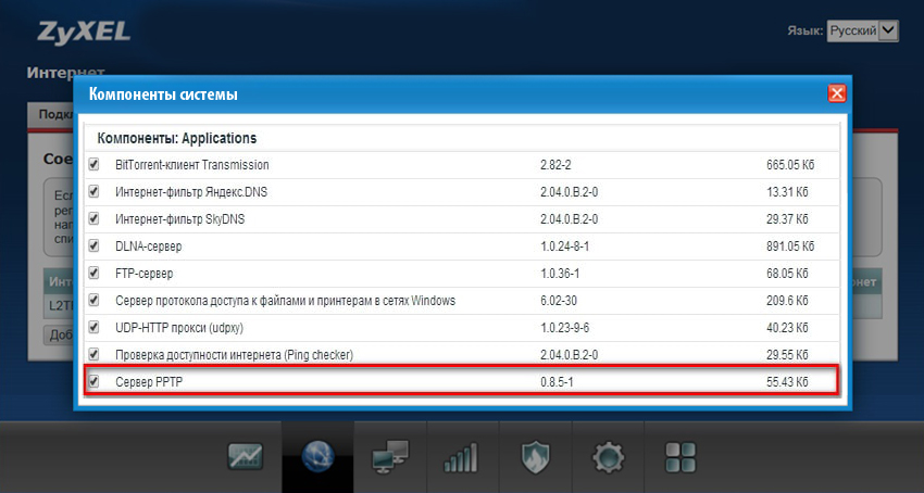 Проверить, установлен ли PPTP-сервер на роутере, можно в разделе «Компоненты системы»