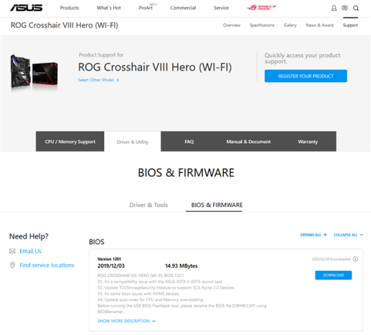 Шаг 2. Проверьте, есть ли какие-либо обновления BIOS для вашей материнской платы
