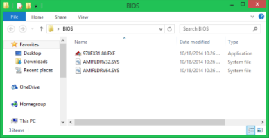 Самый простой способ — обновить BIOS из Windows. Если это то, что вы выбрали, у вас должен быть один или несколько файлов, загруженных на ваш компьютер. Ниже вы можете увидеть пример того, что вы должны иметь, если вы планируете обновить BIOS материнской платы от AsRock. Среди этих файлов должен быть исполняемый файл.