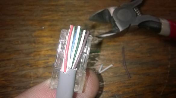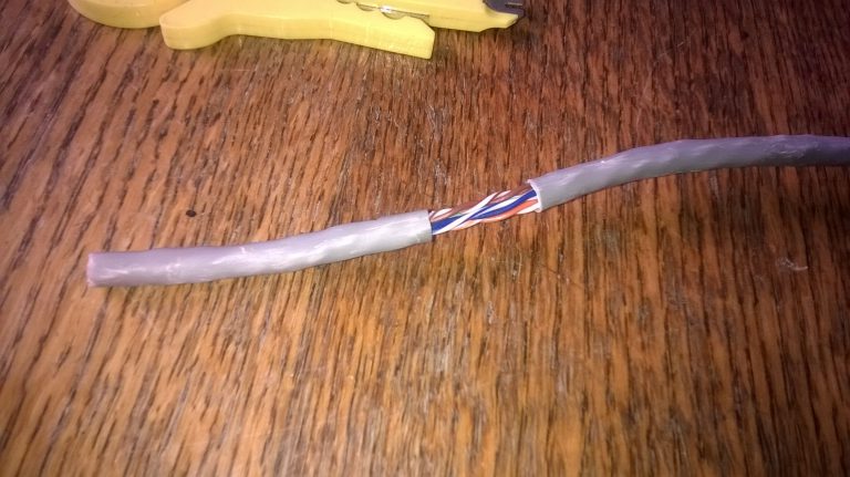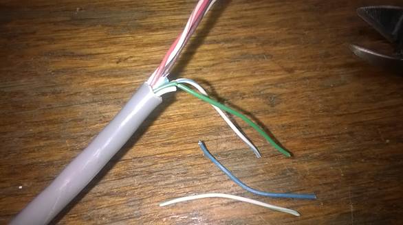 При выборе кабеля существуют разные нюансы, например толщина жилы 0,55мм уже с трудом влезает в коннектор (пришлось счищать изоляцию с каждой жилы). Встречается китайский NONAME кабель у которого жилы диаметром 0,3мм, а материал не медь, а какой-то непонятный сплав. Так производитель решил сэкономить. Бывает, что при разделке обнаруживается вместо четырех пар всего лишь две. Печально, когда это обнаруживается после прокладки кабельной линии. На подобные мелочи стоит обращать внимание при покупке кабеля.
