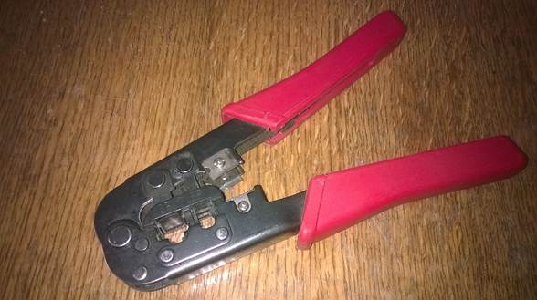 Обжимать будем кусок провода 3м (патч-корд), с двух сторон. Для того, чтоб оконечить витую пару понадобится инструмент для обжима . В условиях профессиональной деятельности этот инструмент всегда в наличии. Если нужно обжать кабель дома, то ради одного двух коннекторов покупать инструмент нет смысла. Можно попросить его у друга, у соседа или добыть на время еще каким-нибудь способом.
