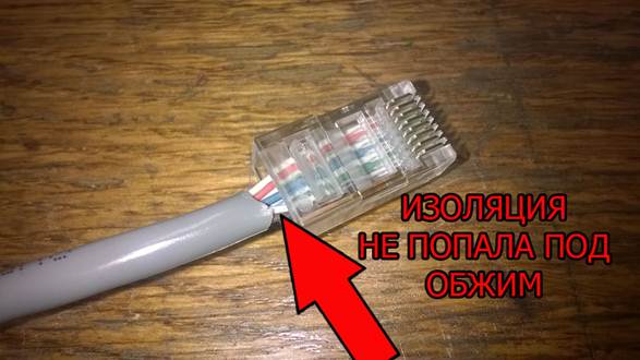 Проверяем внешнюю изоляцию. Она должна заканчиваться точно в месте прижима коннектора. Если этот момент упустить, то коннектор будет болтаться на проводах и в итоге может оторваться.