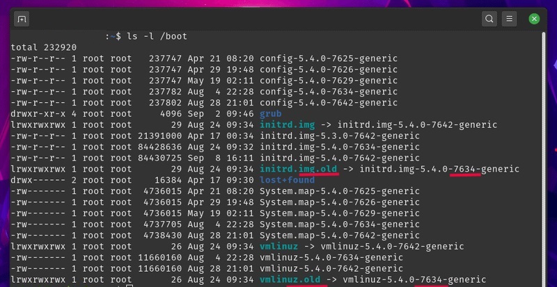 Мы указали на свое текущее ядро и старые ядра в моем случае на скриншоте выше, поэтому вы должны быть осторожны с версией ядра в вашей системе.