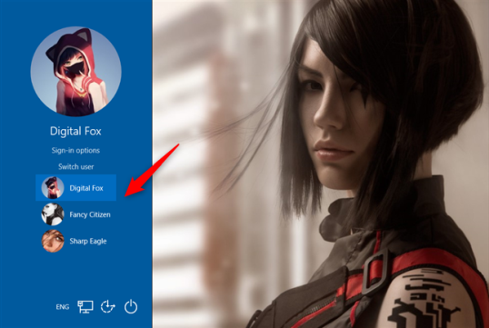 2. Как переключать пользователей в Windows 10 из меню «Пуск»