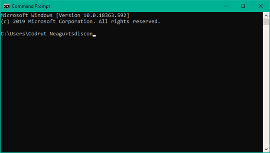 Если вам нравятся среды командной строки , откройте командную строку или PowerShell. Затем введите tsdiscon и нажмите Enter.