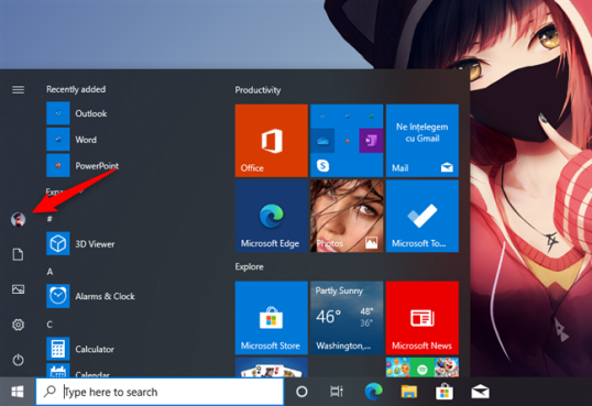 Если вы уже вошли в Windows 10, вы можете переключить учетную запись пользователя из меню «Пуск». Откройте меню «Пуск» и нажмите на символ/изображение вашей учетной записи.