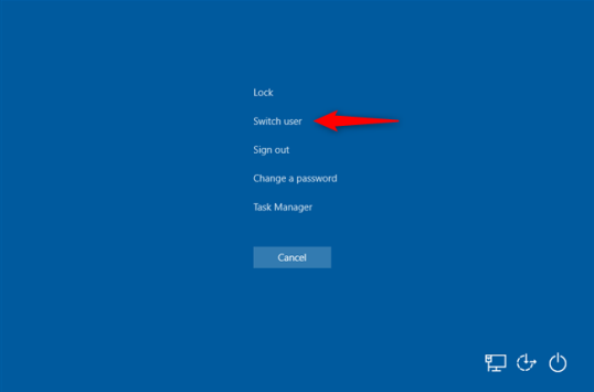 Этот метод работает только тогда, когда вы уже вошли в систему с учетной записью пользователя. Сначала одновременно нажмите клавиши CTRL + ALT + Delete на клавиатуре. Появится новый экран с несколькими опциями прямо в центре. Нажмите или коснитесь «Переключить пользователя», и вы попадете на экран входа в систему.