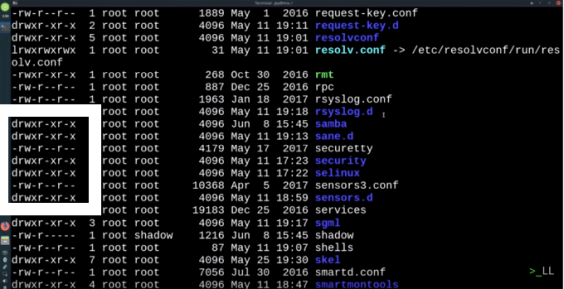 Посмотрите на первый символ в строке. D означает каталог. Таким образом, даже если ваш дистрибутив Linux не использует разные цвета, вы все равно будете знать, что символьная строка, начинающаяся с d, является каталогом.