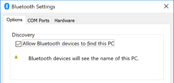 Установите флажок Разрешить устройствам Bluetooth найти этот ПК и нажмите «ОК». В этом нет необходимости, если вы хотите что-то вроде мыши или клавиатуры, но может быть полезно для сопряжения таких устройств, как телефоны.