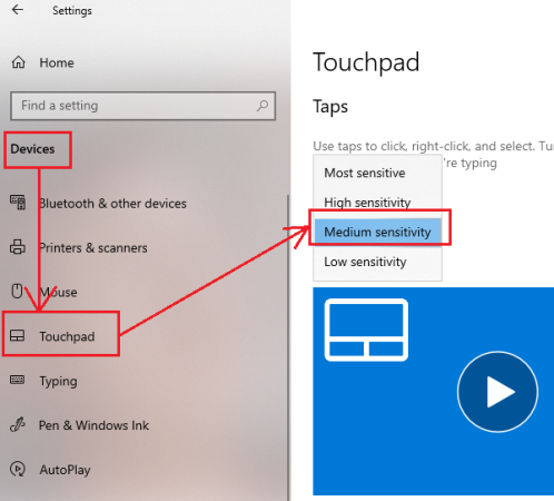 Из раскрывающегося меню измените чувствительность сенсорной панели на среднюю чувствительность. Перезагрузите систему.