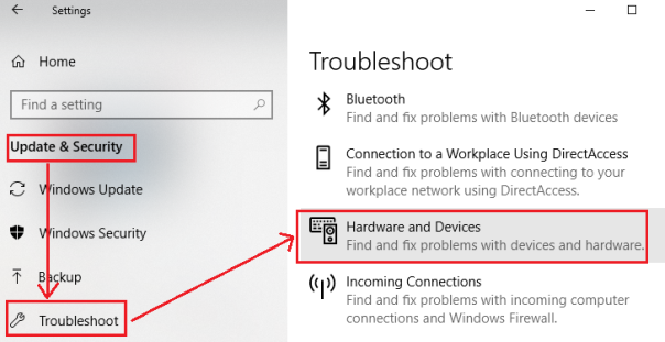 Средство устранения неполадок оборудования и устройств помогает в проверке распространенных проблем, препятствующих правильной работе компонентов оборудования. Было бы целесообразно запустить его, прежде чем приступить к другим решениям.