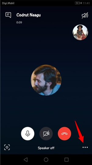 Запустите приложение Skype на смартфоне Android и выполните аудио- или видеозвонок. Во время разговора коснитесь кнопки … (Дополнительные параметры).