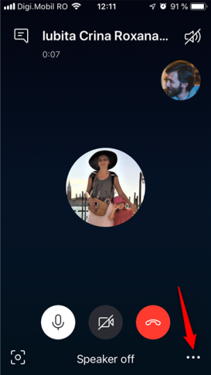 Выполните аудио- или видеозвонок с помощью приложения Skype со своего iPhone или iPad. Затем во время разговора нажмите кнопку … (Дополнительные параметры) в правом нижнем углу экрана.