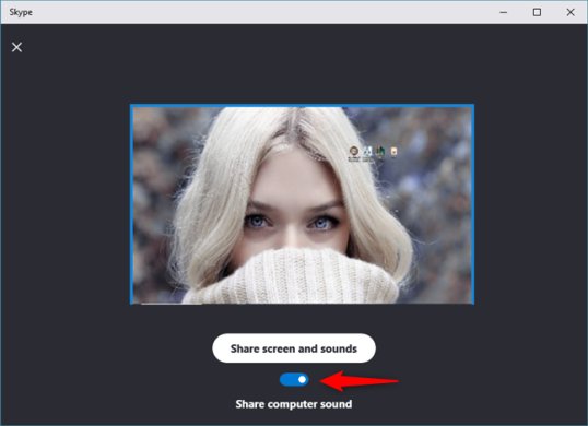Если вы также хотите поделиться звуками, издаваемыми вашим компьютером с Windows 10, сначала включите переключатель «Общий звук компьютера», а затем нажмите или коснитесь кнопки «Поделиться экраном и звуками».