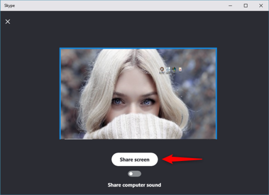 Skype покажет вам предварительный просмотр вашего экрана. Если вы хотите открыть общий доступ только к своему экрану, без звука компьютера нажмите или коснитесь Общий экран.