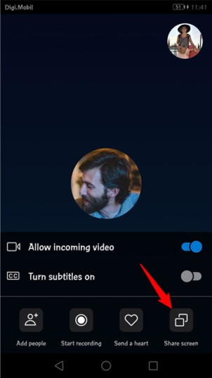 Skype для Android должен отобразить несколько кнопок в нижней части экрана. Один из них называется Share screen. Нажмите на него.