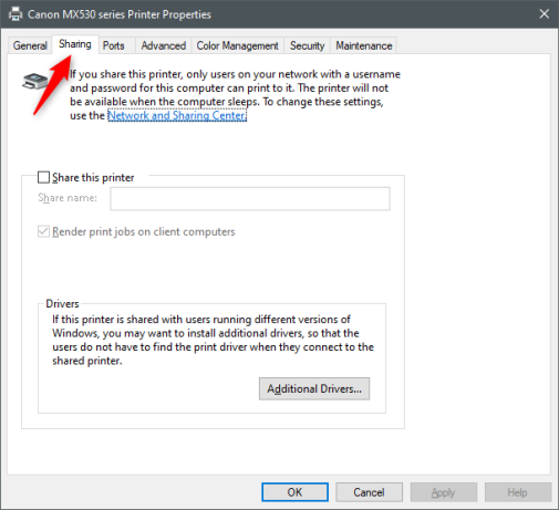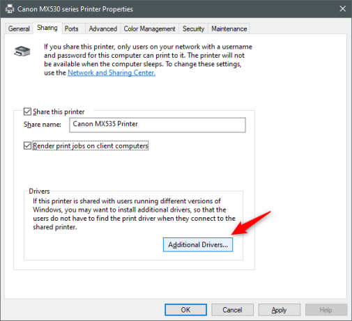 Если в вашей сети есть компьютеры или устройства, использующие другие версии Windows, вы можете также предоставить им дополнительные драйверы для вашего общего принтера. Как указывает Microsoft, если вы «[…] устанавливаете дополнительные драйверы, пользователям […] не нужно искать драйвер печати при подключении к общему принтеру». Если вы хотите облегчить им жизнь, нажмите кнопку «Дополнительные драйверы».