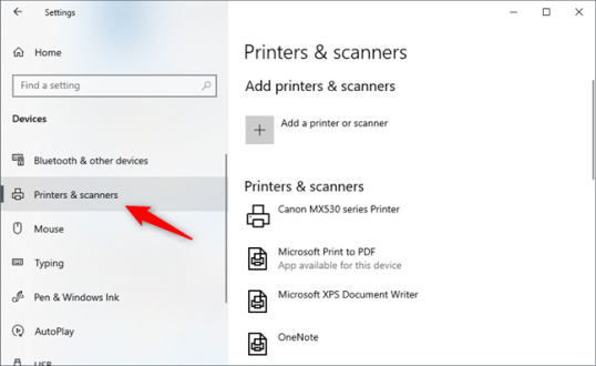 На левой боковой панели категории «Устройства» выберите вкладку «Принтеры и сканеры».