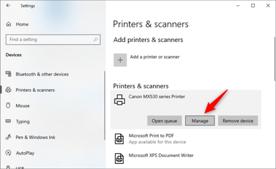 Это действие открывает страницу под названием «Управление устройством». Найдите ссылку «Свойства принтера» и нажмите или нажмите на нее.