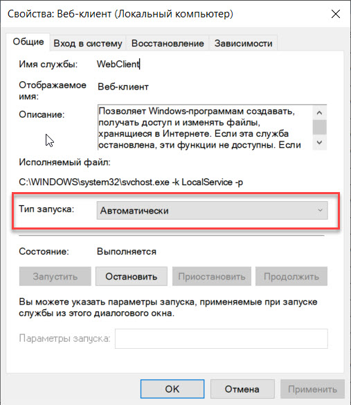 Если команда не выполняется и выдает ошибку: “Системная ошибка 67. Не найдено сетевое имя.”, проверьте состояние службы Web-клиент. Некоторые обновления Windows самостоятельно меняют тип запуска службы на “Вручную”. Установите ” Автоматически”.