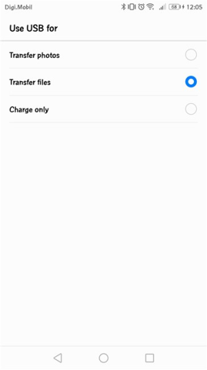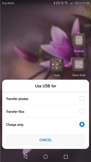 Откроется диалоговое окно «Использовать USB для». Разница лишь в том, что на этот раз он отображается на весь экран, а не во всплывающем окне.