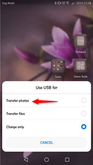Кроме того, вы также можете выбрать для переноса фотографий на вашем смартфоне Android. Название этой опции немного вводит в заблуждение, поскольку позволяет передавать фотографии и видео.
