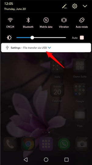 Если ваш Android-смартфон не спрашивает вас о USB-соединении, вы сможете запустить это диалоговое окно из ящика уведомлений. Проведите пальцем от верхней части экрана и коснитесь уведомления Настройки.