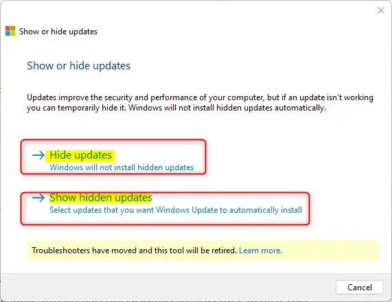 В этом посте показано, как использовать инструмент устранения неполадок «Показать или скрыть обновления» в Windows 11. Если вы обнаружили ошибки или вам есть что добавить, воспользуйтесь формой комментариев ниже.