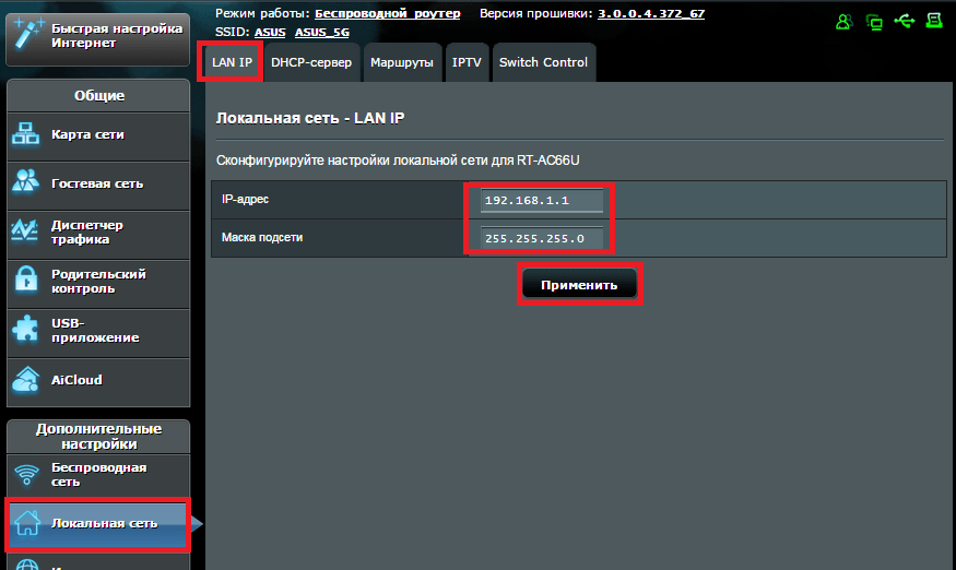 После смены настроек ЛВС и DHCP нажимайте кнопку «Применить». Перезапустите роутер — он заработает с новыми настройками.