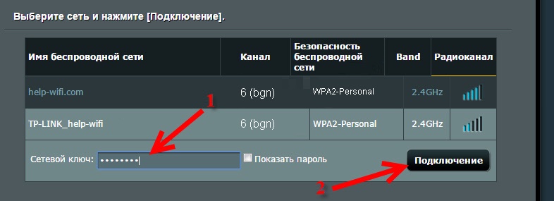 1. Введите ключ WPA-2 от того роутера и нажмите кнопку подключения к нему.