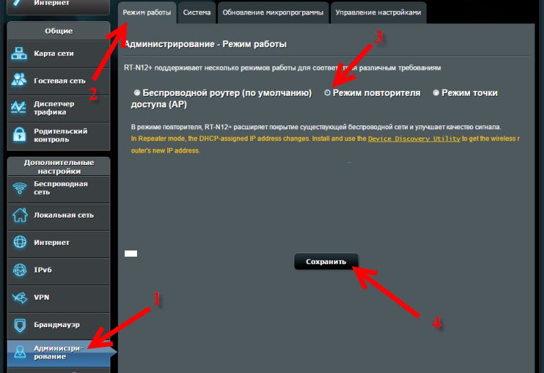 1. Выберите режим повторителя и нажмите кнопку «Сохранить».