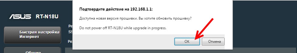 Сообщение-запрос роутера Asus RT об обновлении прошивки