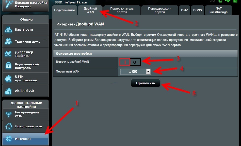 1. Для этого дайте команду «Интернет — Двойной WAN», включите функцию «Двойной WAN».